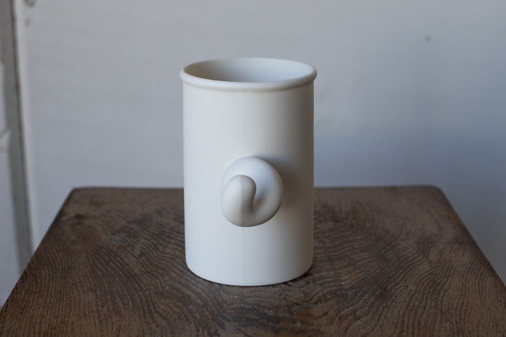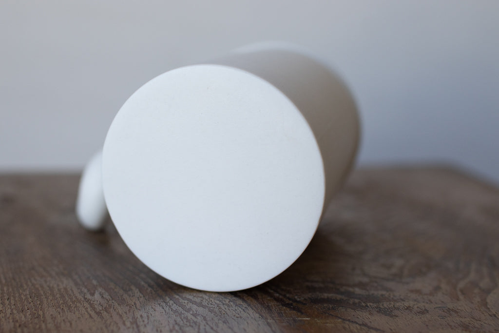 磁土・鋳込み・無釉。独特のすべすべした手触りは執念の磨き作業によるもの。透光性もあるので、照明にかざすとうっすらと光が透けて綺麗です。