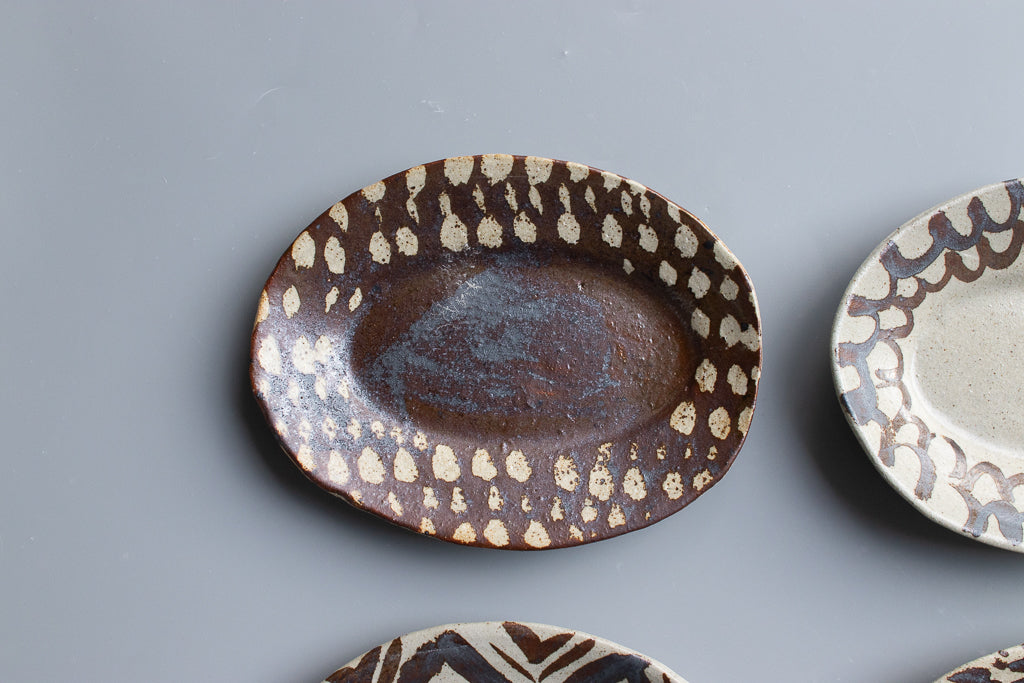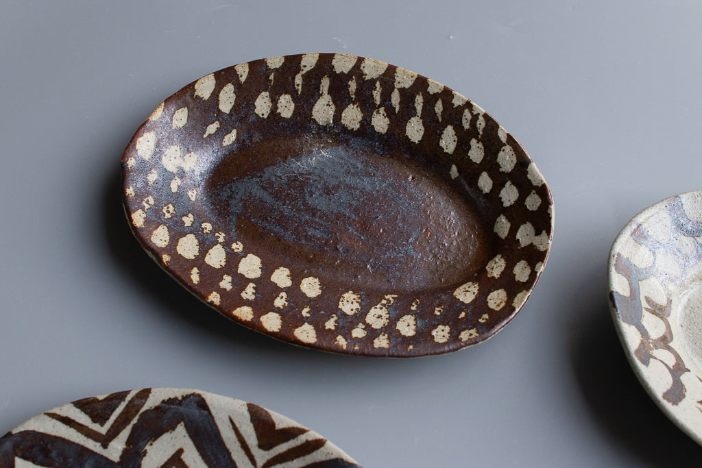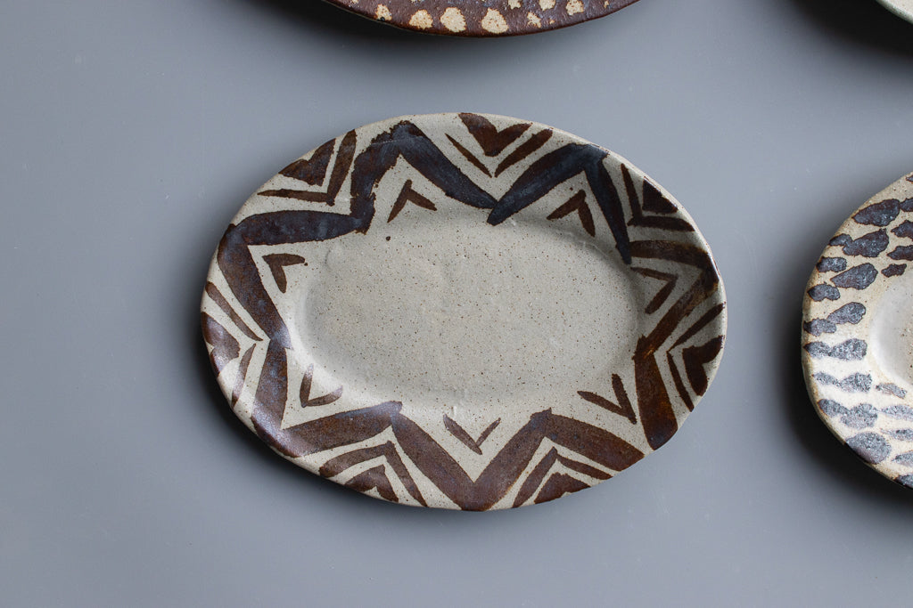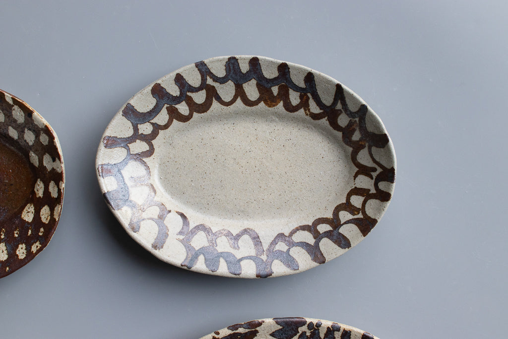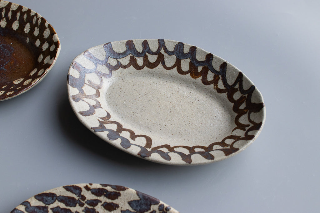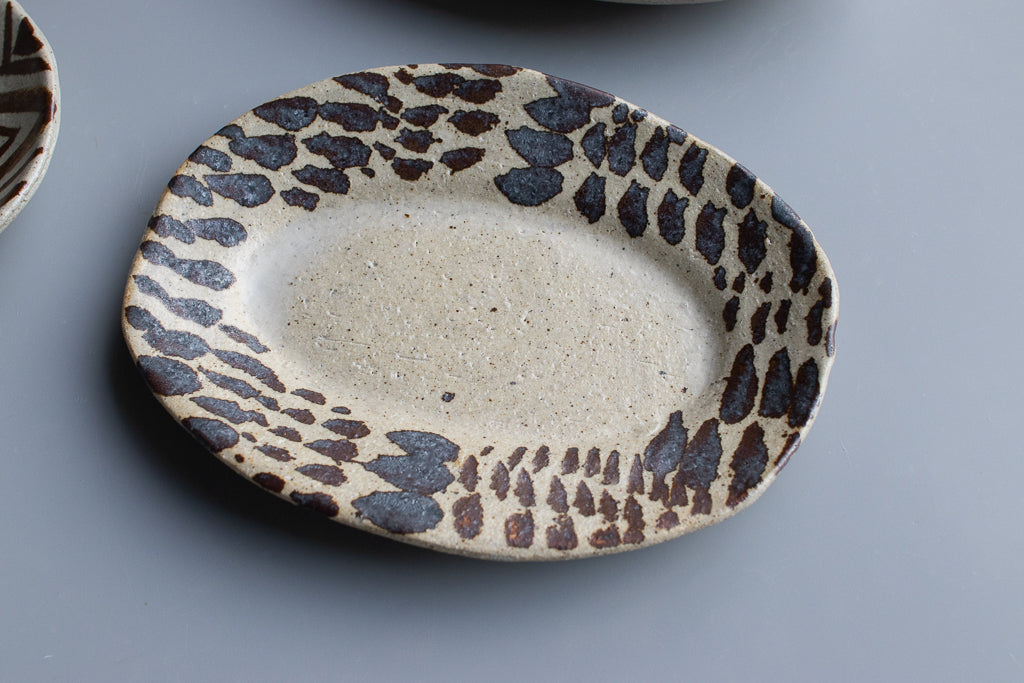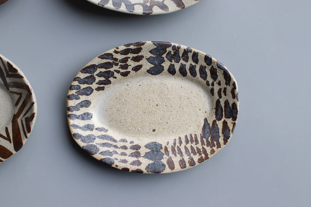 西川真衣 / ミニオーバル皿 鉄絵・蝋抜き