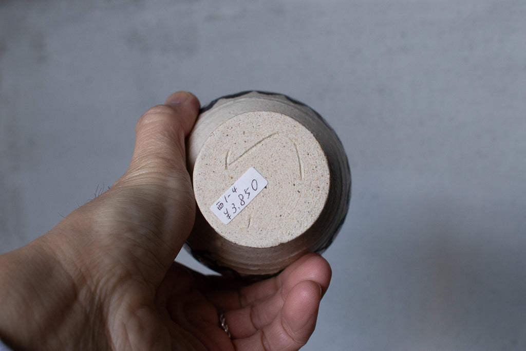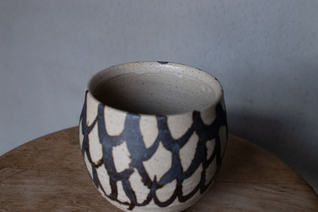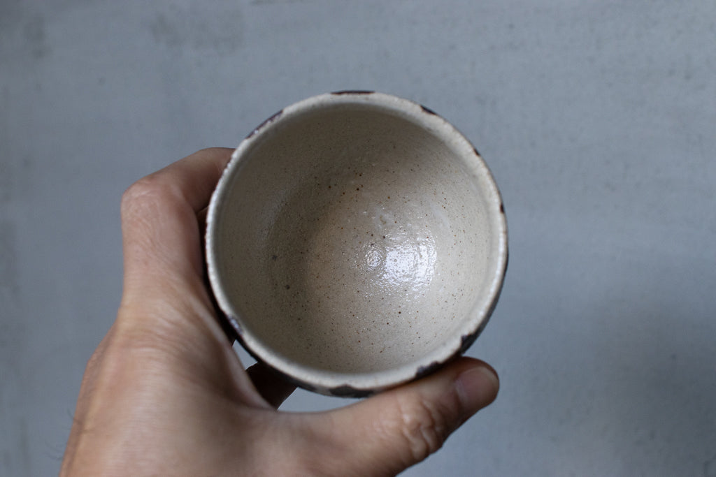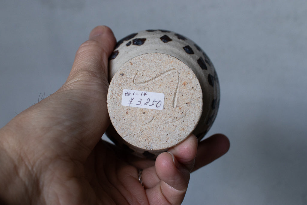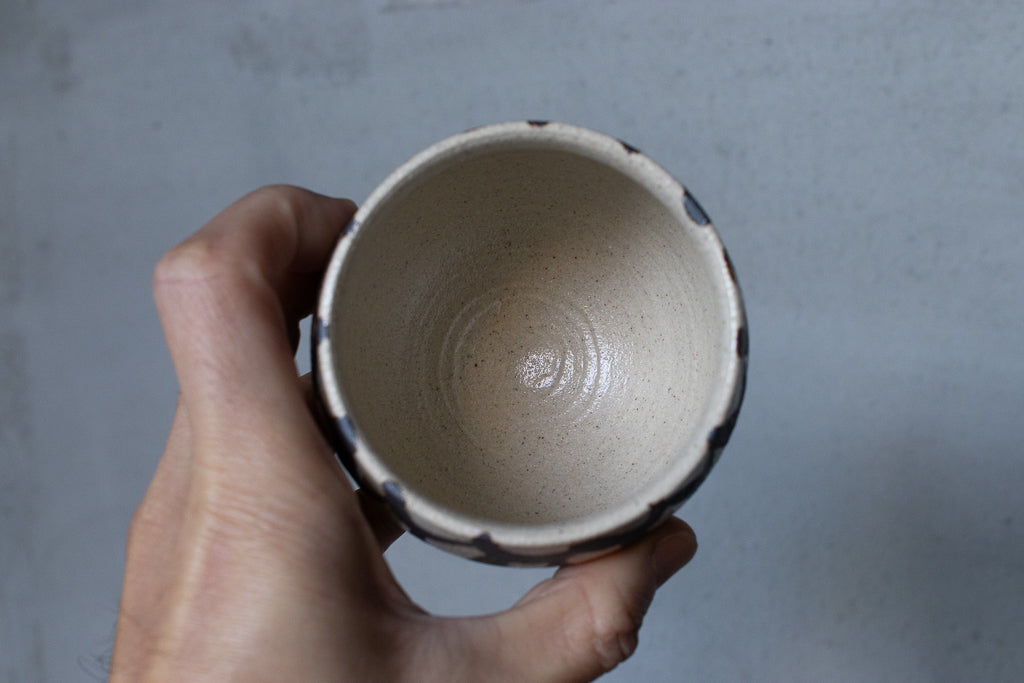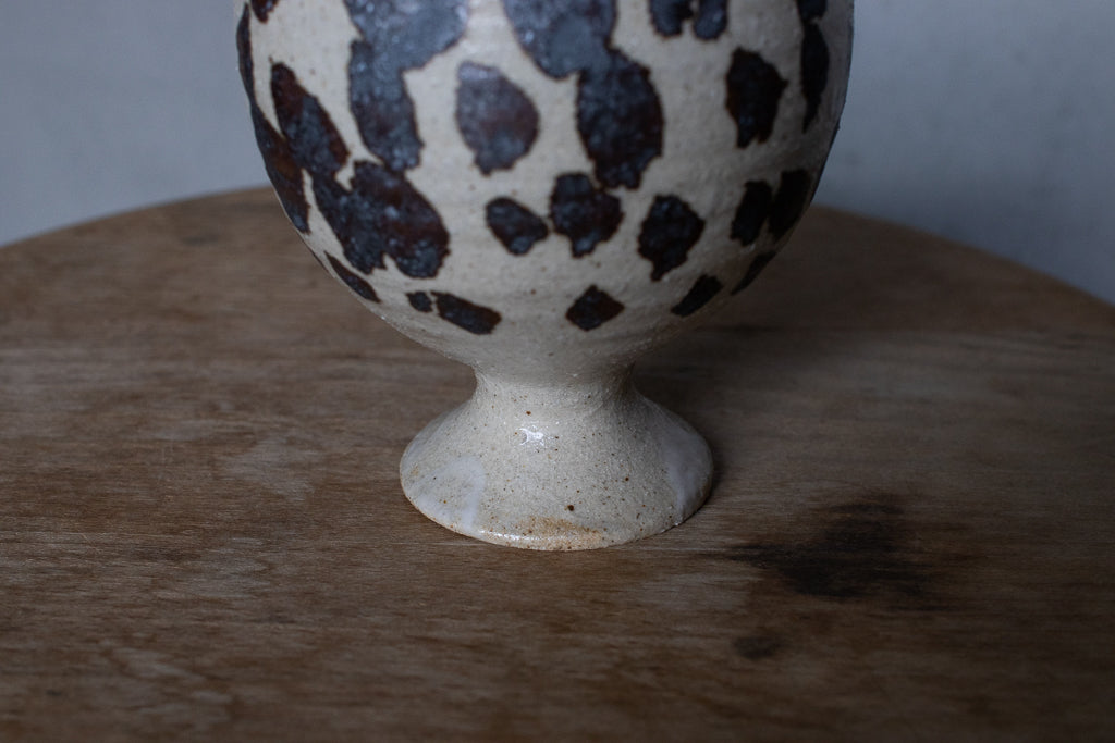 西川真衣さんのゴブレット。足元を小さめに仕上げた見た目のバランスがよく、鉄絵の柄も手仕事感に溢れており、モダンさと素朴さが同居した良い塩梅の作品です。
