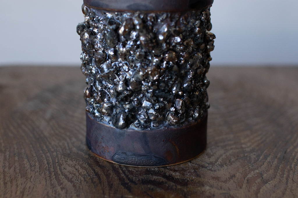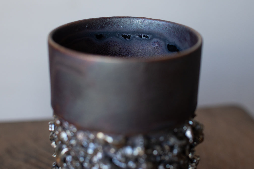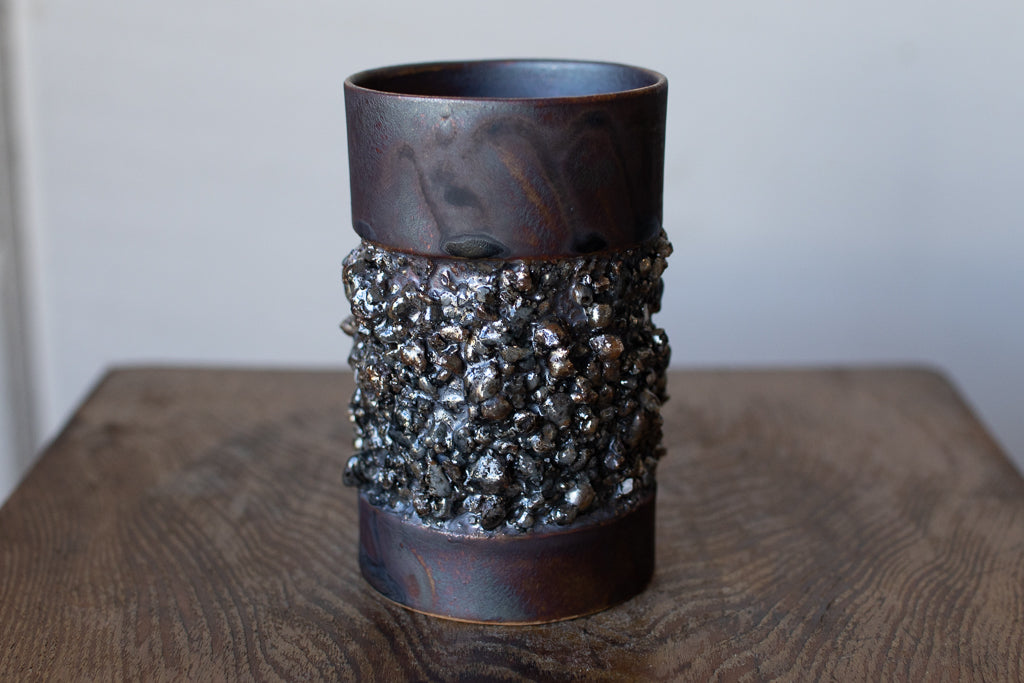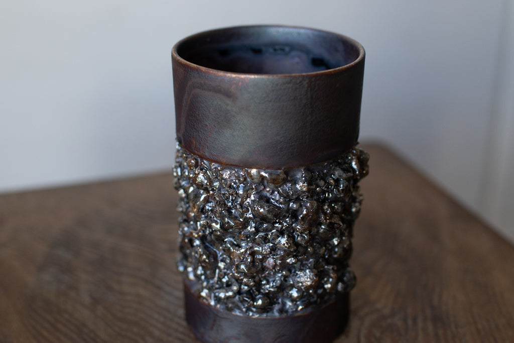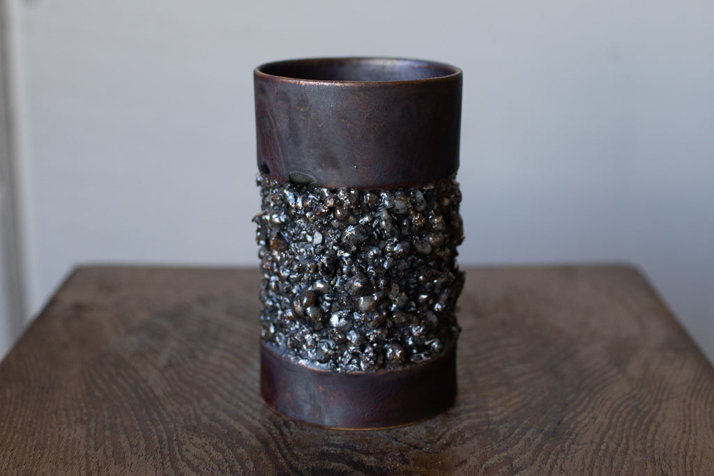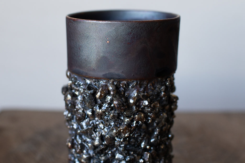 普通のカップに飽きた方に。石部分は普通にゴツゴツしていますし熱伝導も結構高いです。五感を刺激してくれる作品です。メタリックな質感が格好良い。