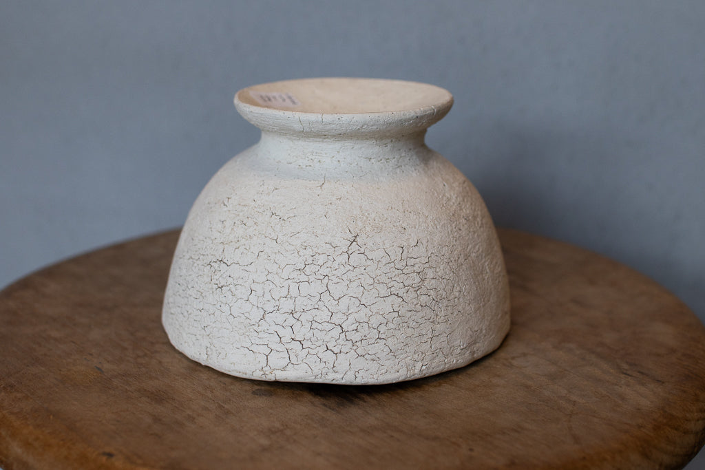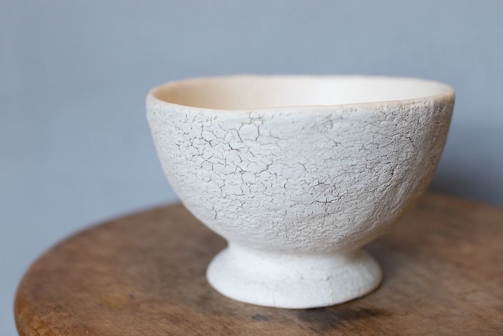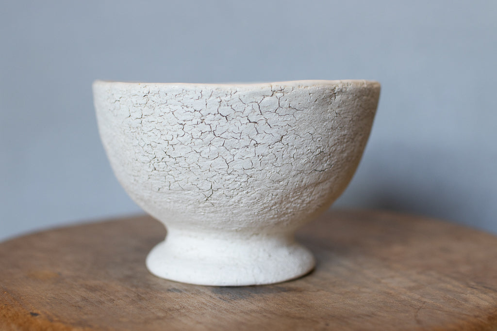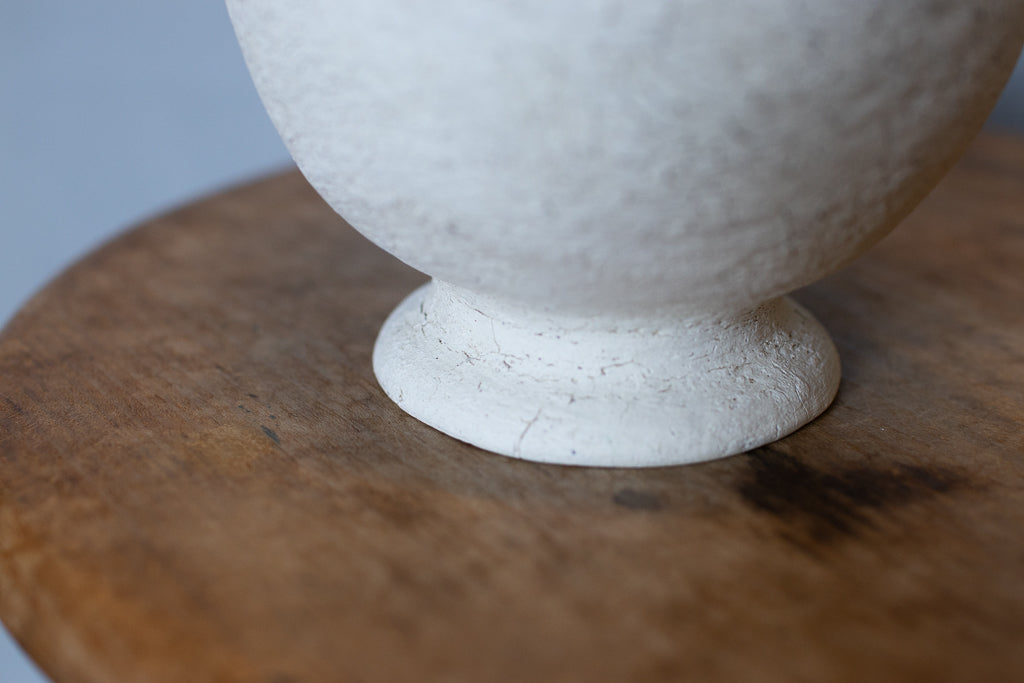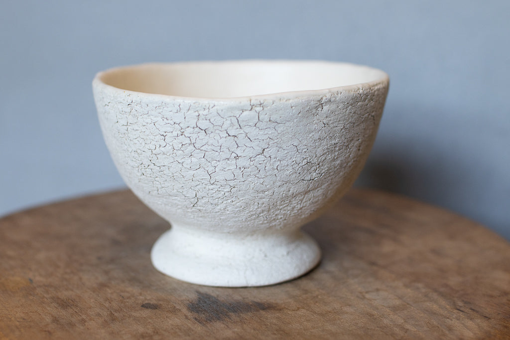 鏡原さん定番のカップにくびれた高台を付けていただいた、「カフェオレボウル」。歪なシルエットと独特な質感、さらにカップ全体を掲げ持ち上げるような高台が加わることで出自不明のオブジェか祭器のような雰囲気が漂い最高に格好いいです。