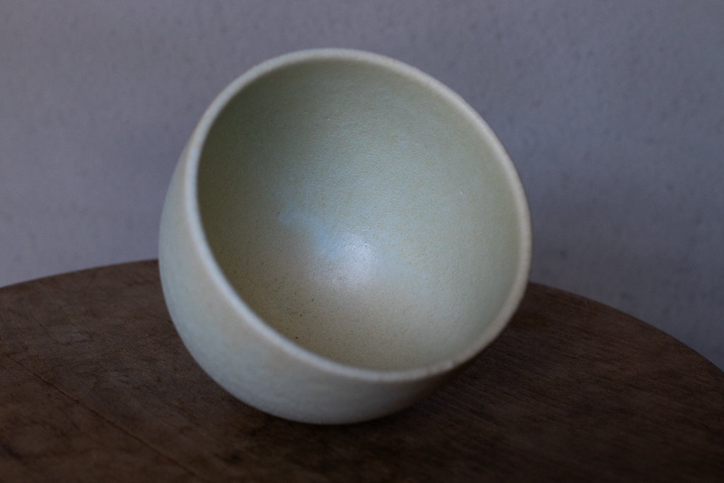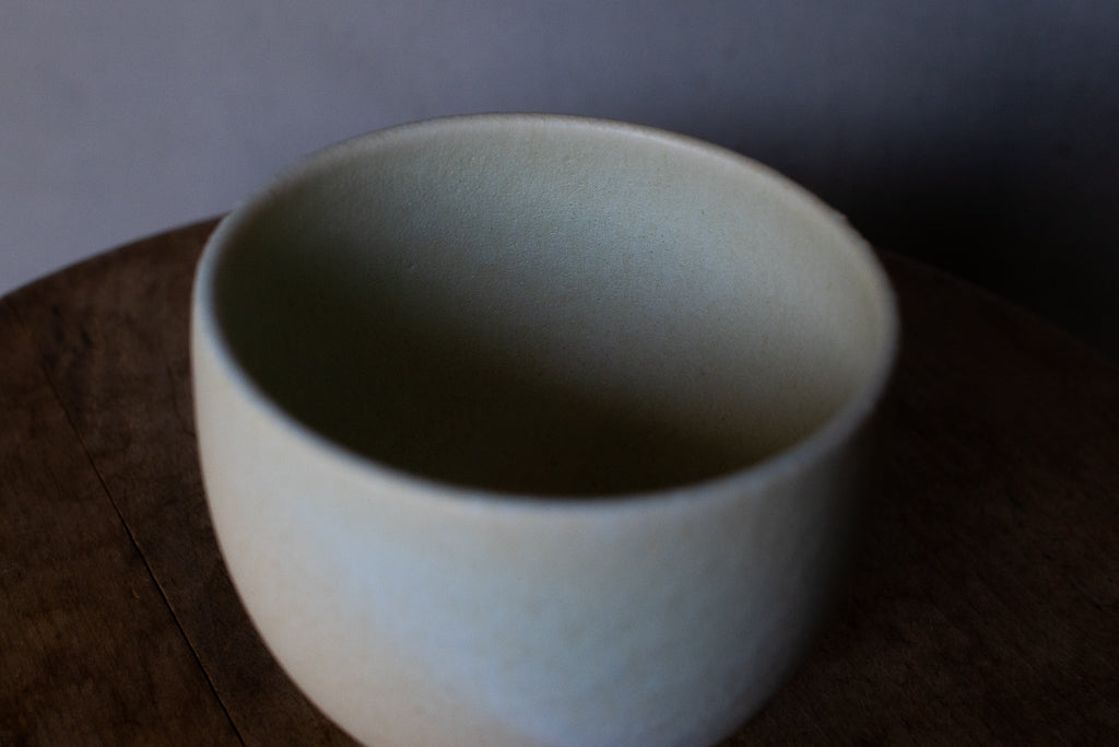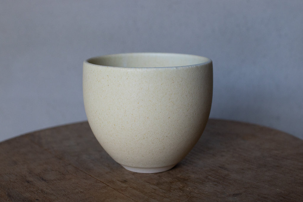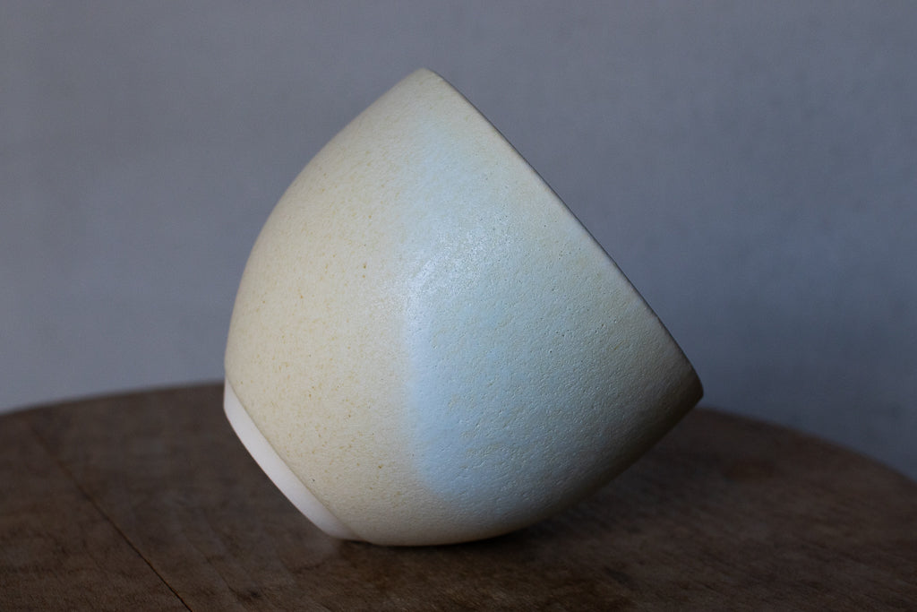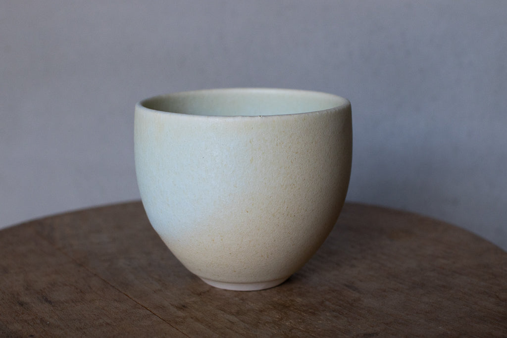 2024年春の個展出展作品。春らしい柔らかなツートンカラーの色彩が美しいカップです。しっかり容量があるので、湯呑みに限らずあらゆるドリンクにお使いいただけそうです。お使いになる全ての釉薬を自身で調合しており、同業者からも畏敬の念を込めて”変態”と呼ばれるほどだという馬場さん。奇跡的な色彩をお楽しみください。