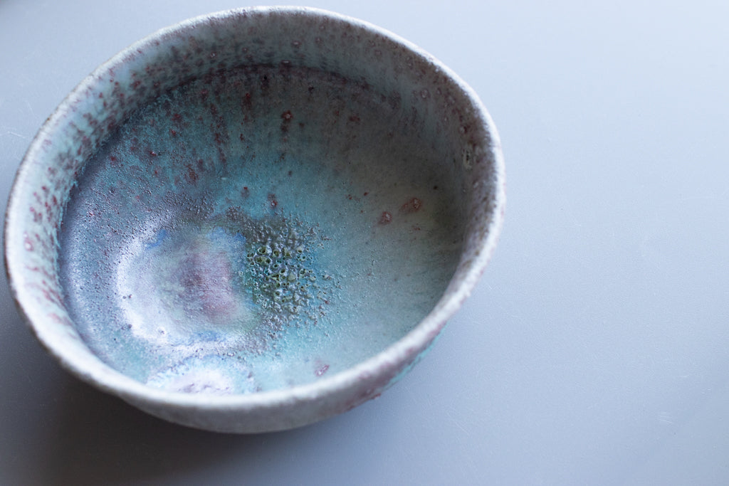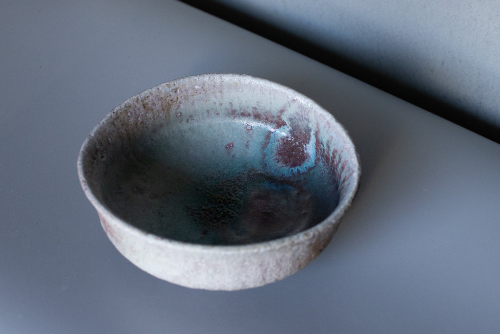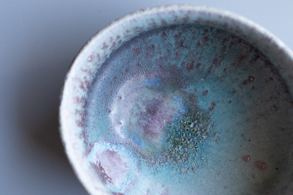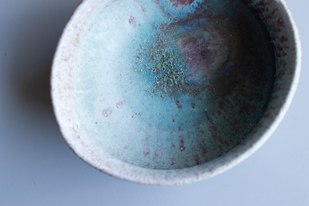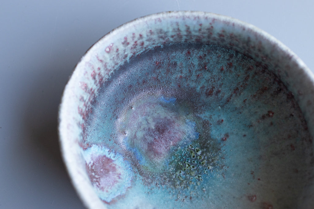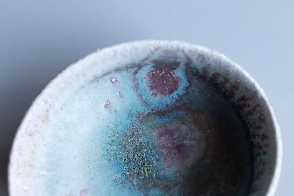 トルコブルー釉薬における酸化/還元の両極の色味を感じて頂ける作品。素晴らしい風合いです。