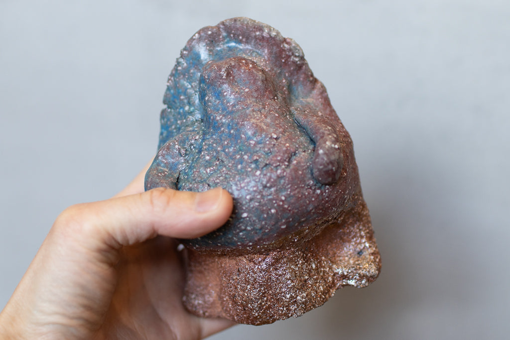 高橋燎 2023年個展出展作品。曖昧な造形が魅力的なたぬきの置物です。