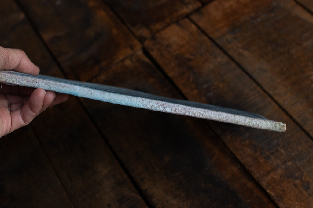 高橋燎氏の薪窯焼成の板皿です。こちらは大きいサイズ。お料理の盛り付けの他、敷物としてや鉢植えの受け皿として使われている方も。様々な用途に活用いただけそうです。もちろんアートパネルとしても。