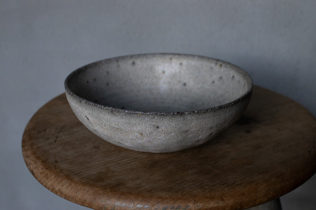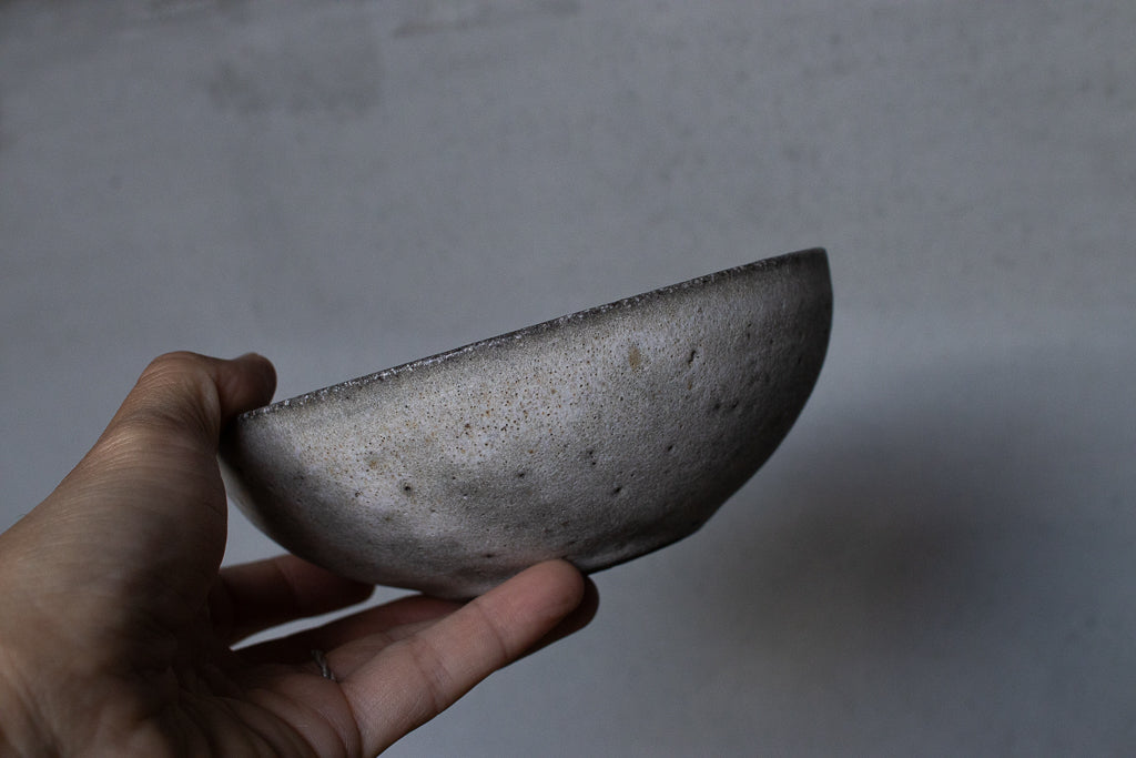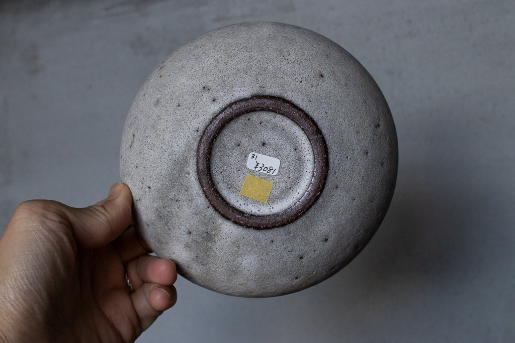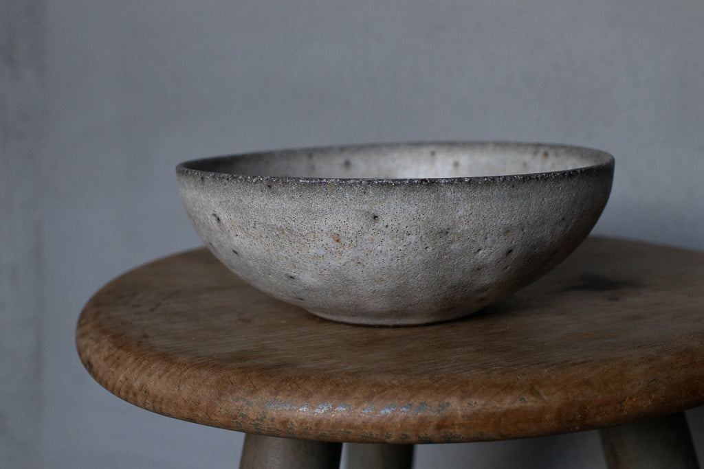 笠間の陶芸家 鷲沢ワシ子氏の中鉢です。ろくろで挽いたベーシックな造形に独特な石のような質感。見込みのツヤも素敵です。