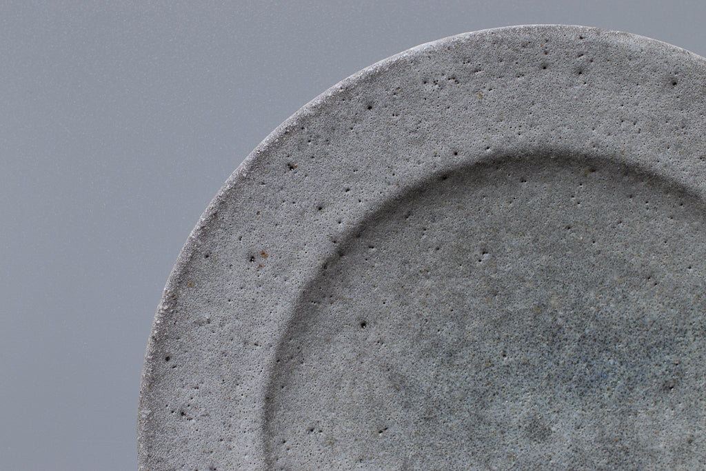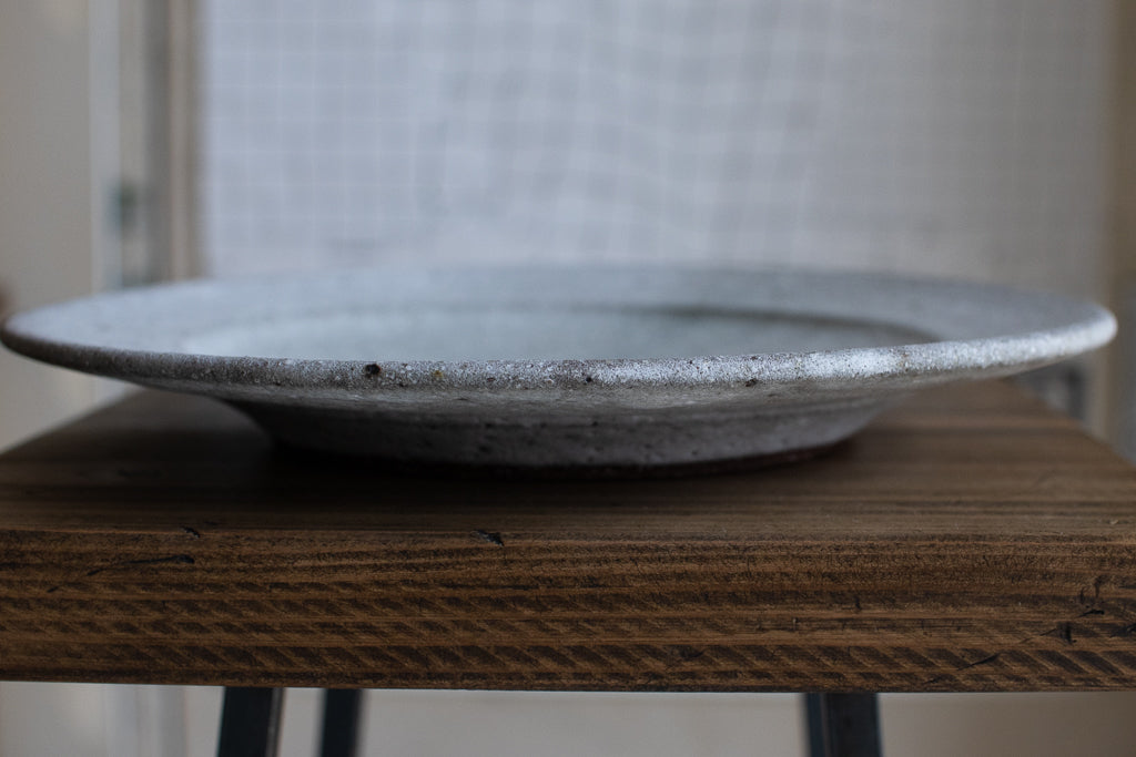 笠間の作家 鷲沢ワシ子氏のリムプレートです。独立されて日の浅い作家さんですが、石のような独特な質感の作風が大変魅力的です。