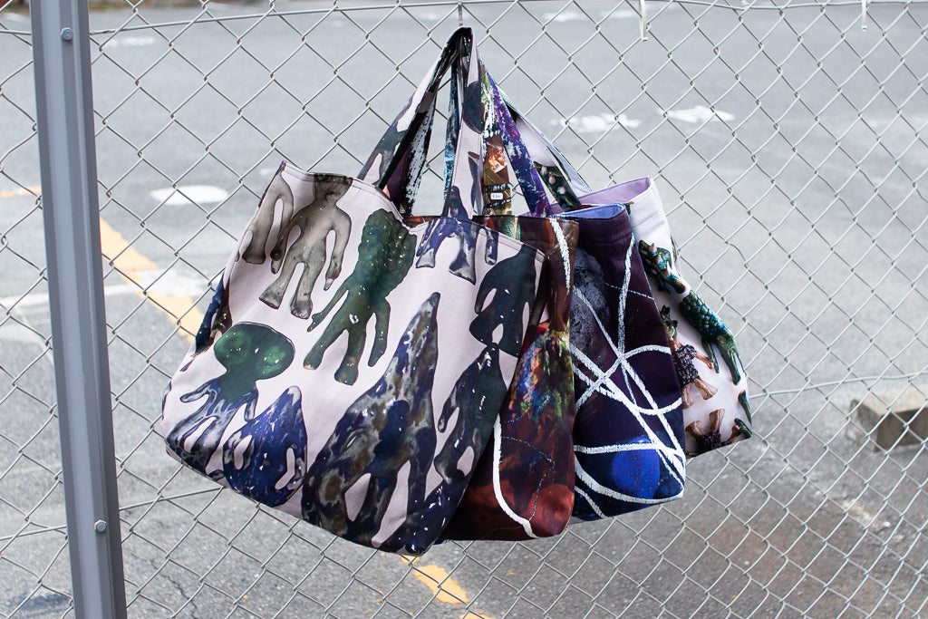 山下雅己・小実からの共作によるLPバッグが入荷しました。こちらは山下氏のドローイングのプリントが全面にあしらわれたタイプです。