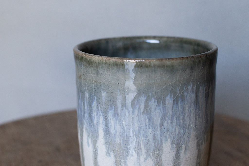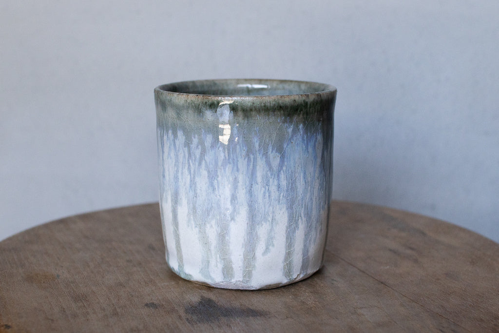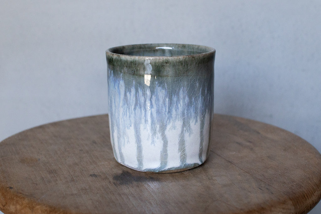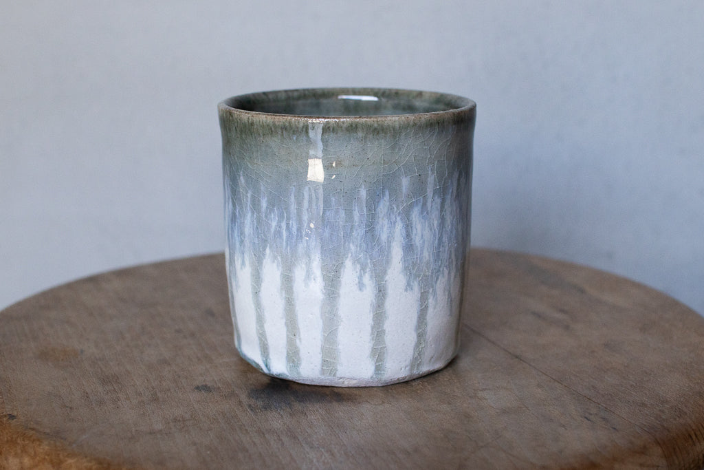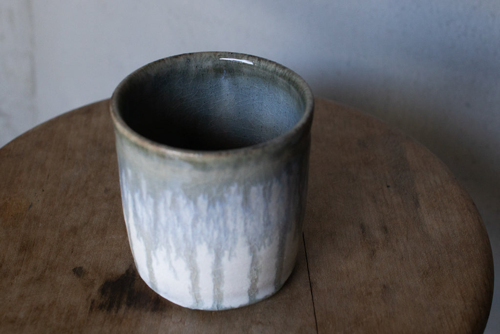 筒型のフリーカップ。釉薬の垂れ感が魅力です。200ccは余裕で入るので便利にお使いいただけます。
