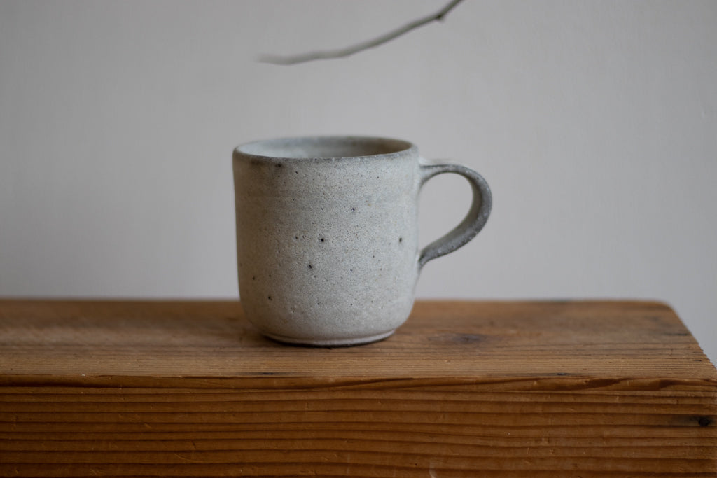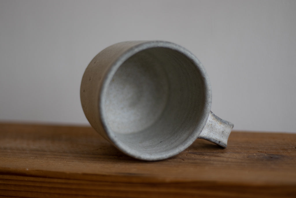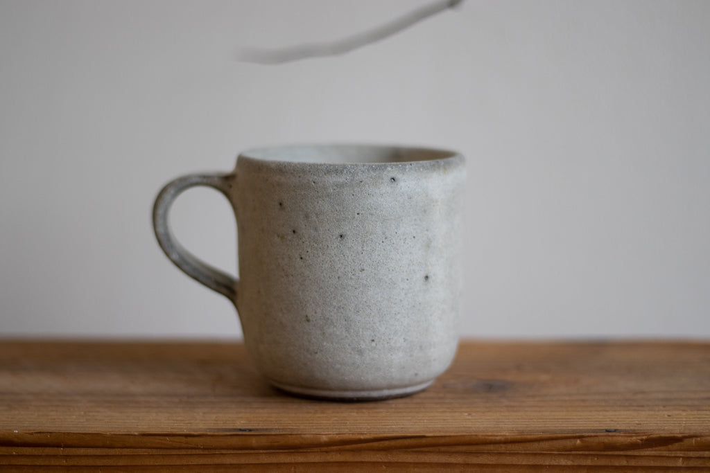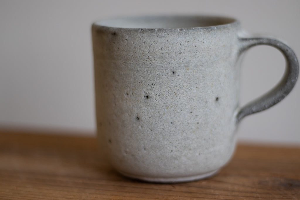 こちらのカップはろくろの作品ですので、均整のとれた滑らかなフォルムになっています。石のような質感とのある種アンバランスな組み合わせが面白いですね。