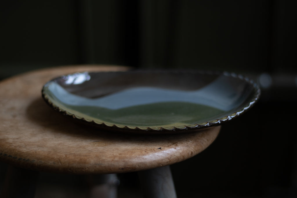 水戸の佐川義乱氏のオーバル皿です。こちらはグリーン系。