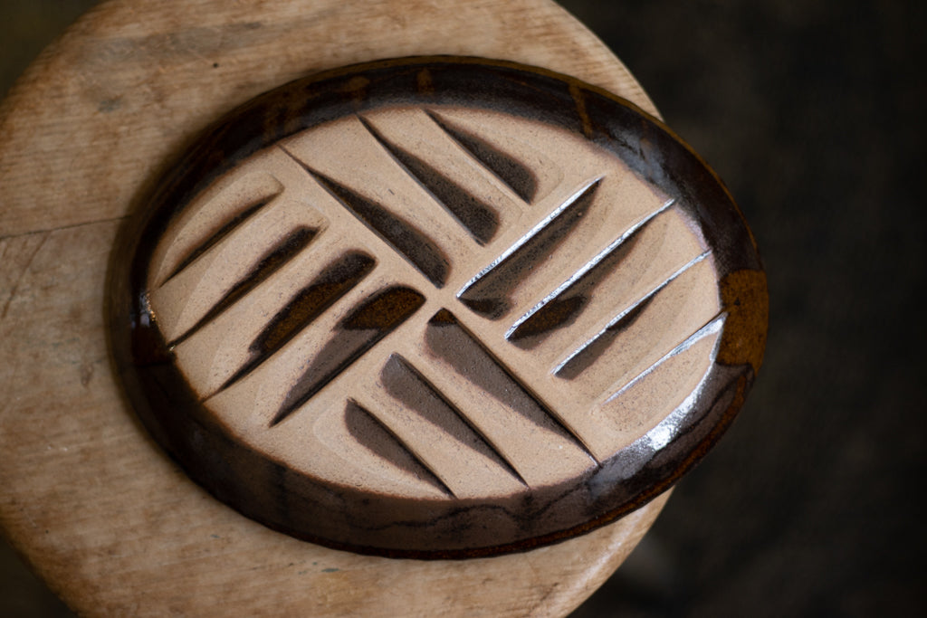 わずかにリムが立ち上がった楕円型のお皿です。パン皿にもおかず用にも。
