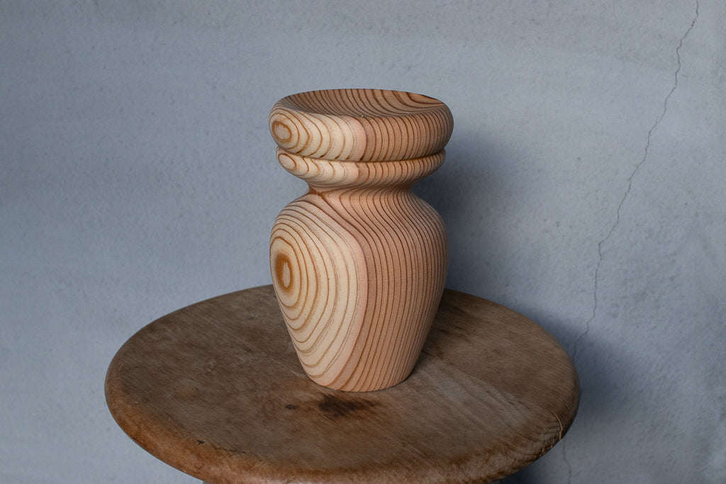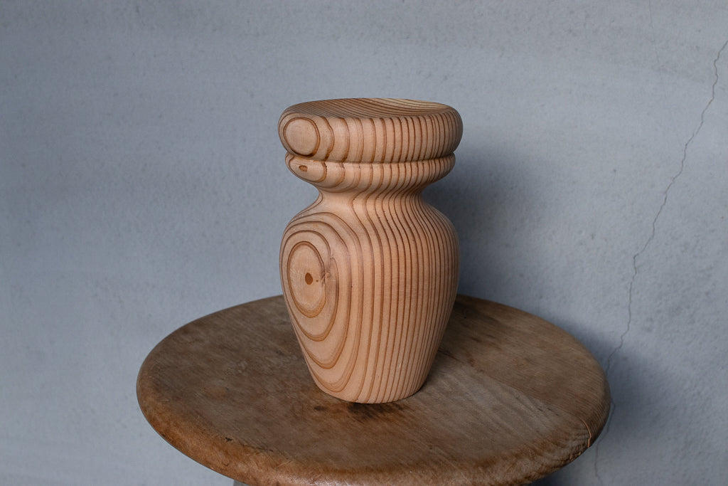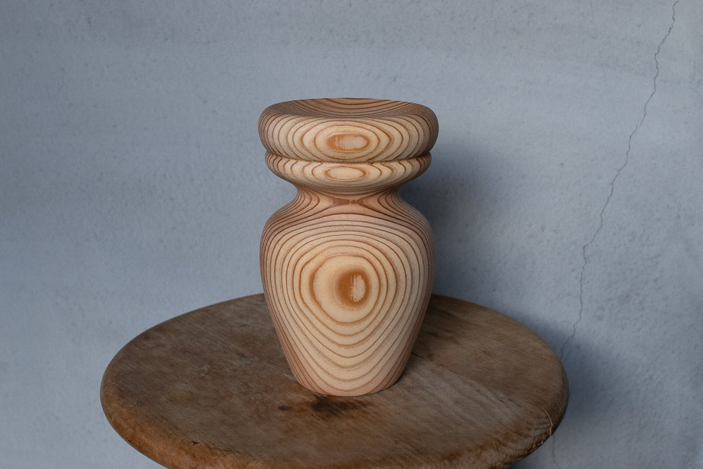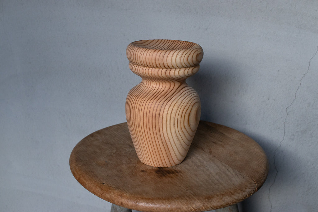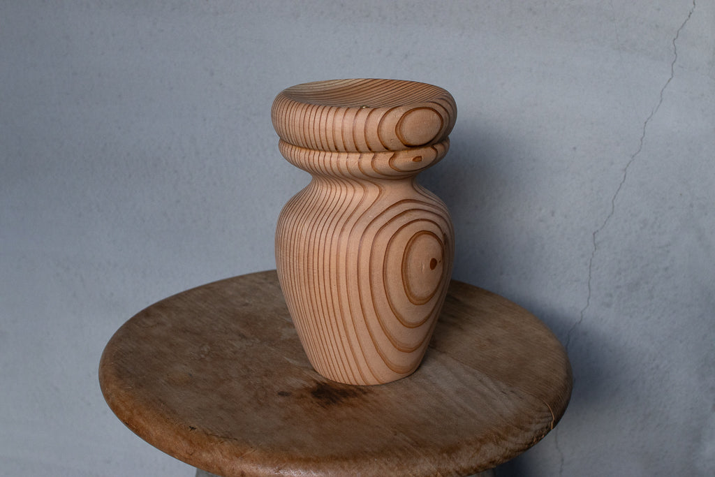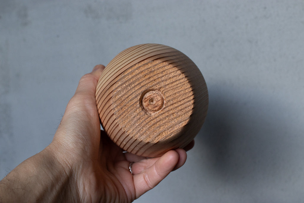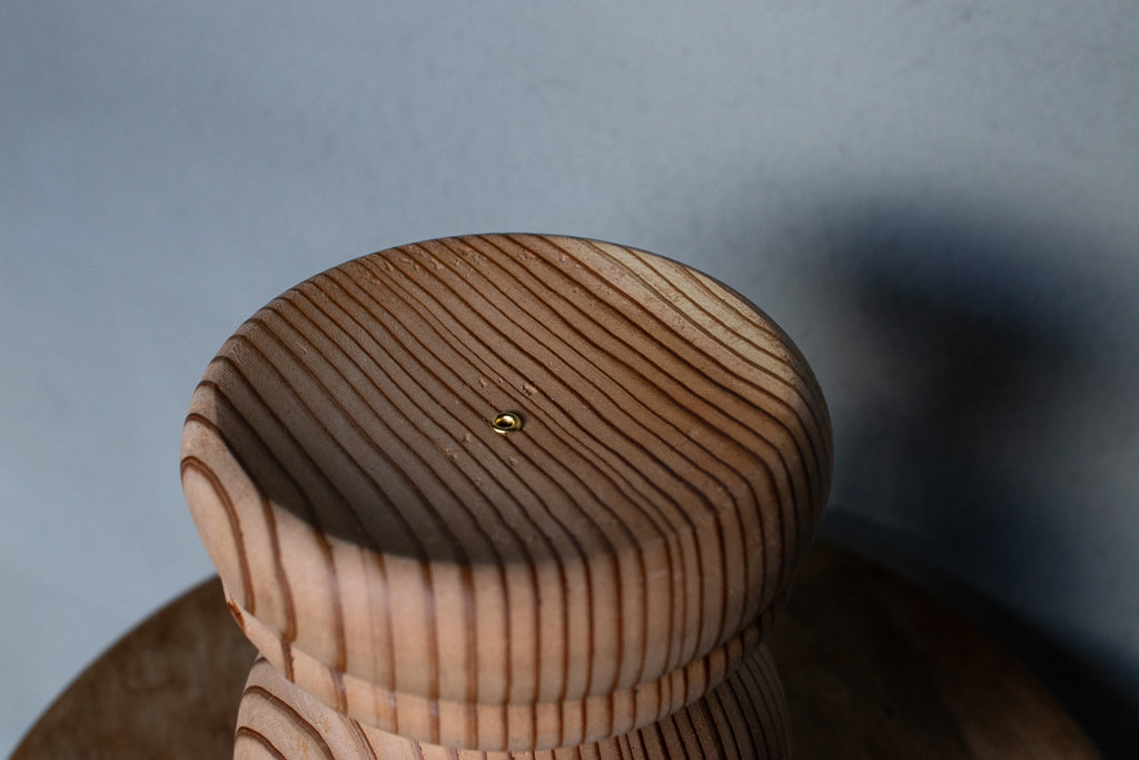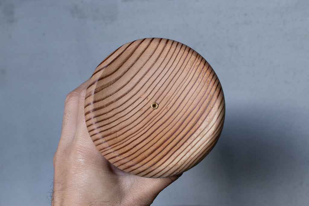 ブランドディレクターのアンジーがひとつひとつ杉の間伐材を旋盤で削りだし造形するインセンスホルダーは完全一点ものの作品です。ポップアップの際には、お香立てとしてはもちろんアクセサリーなどの小物置きとして使うという方もたくさんいらっしゃいました。単体で飾っておくだけでもサマになる作品です。