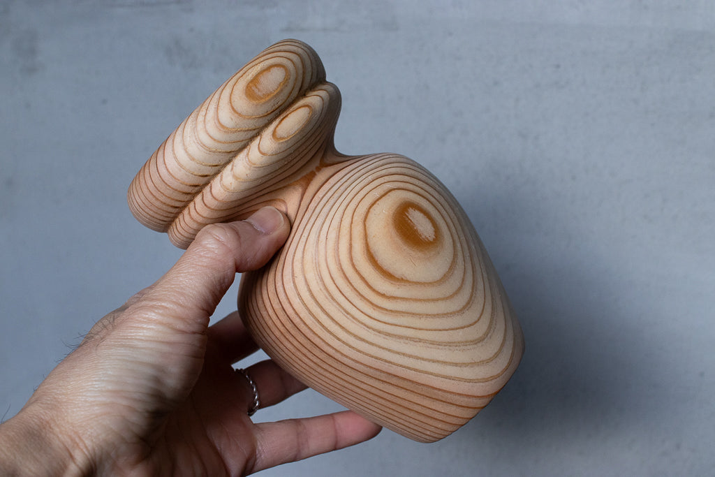 こちらは新作の”Type-B”。削りの工程を簡略化することでより手に取りやすい価格に設定されたタイプです。滑らかなシェイプで存在感があり、スタイリッシュなこけしのよう。これはこれでいいですね!